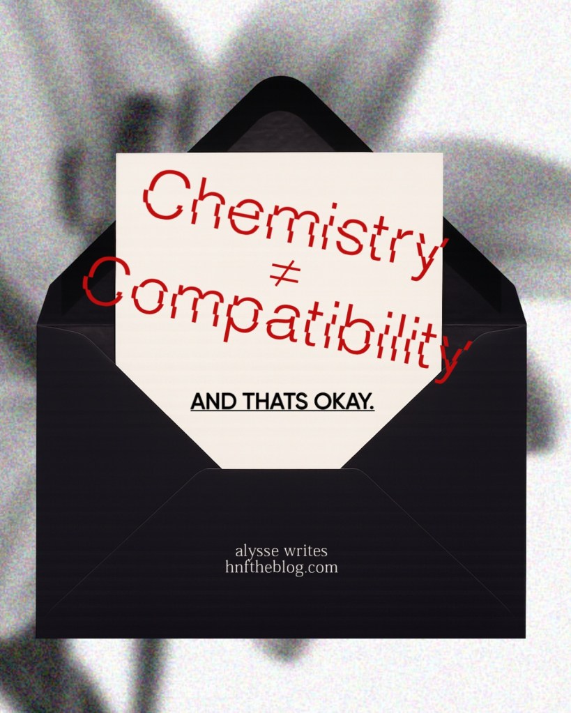 Chemistry feels urgent — but if I’m being honest, it’s fleeting. It pulls you in and before you have time to think about what comes next, you’re entangled. You’re thinking, this is it. This has to be what love feels like.